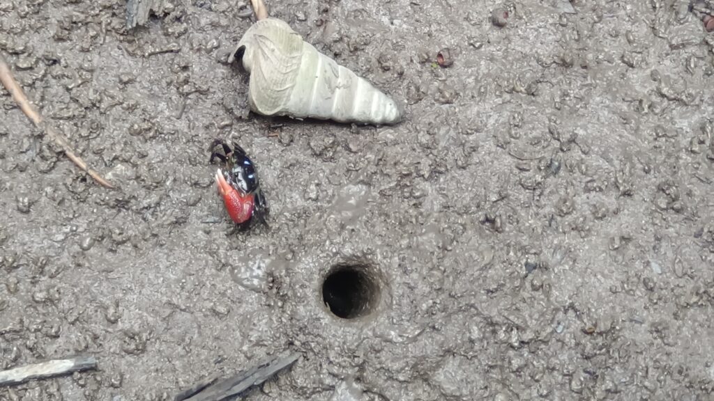 退潮时,我们看到丰富的小生物,如旗鱼、小螃蟹以及空气根植物。